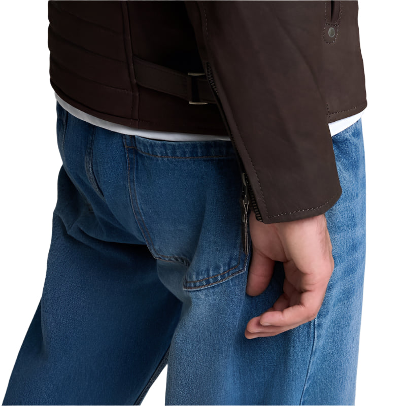 The Moto Snuff Leather Jacket Choc Brown snuff is a truly popular leather jacket and comes standard with shoulder and lower back padding. This regular fit jacket comes with metal zips, neck strap and wrist zips. This is definitely an essential jacket for every man that looks great with any outfit. Take it from the office meeting to a night out with the guys.