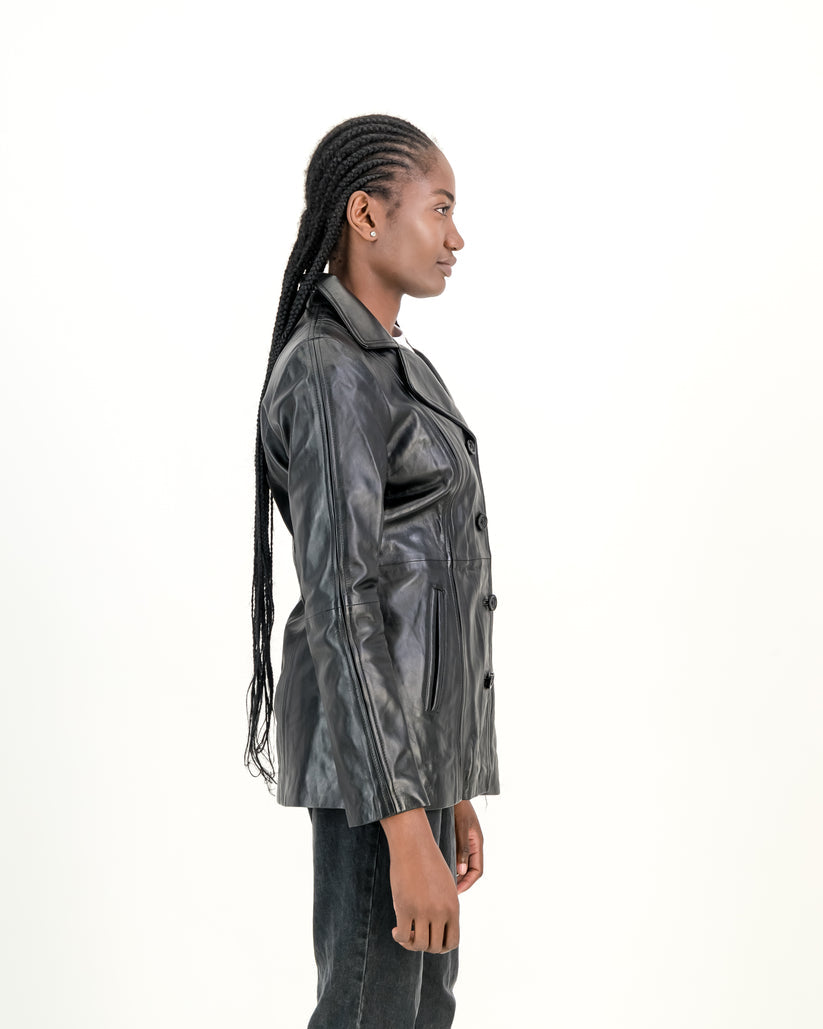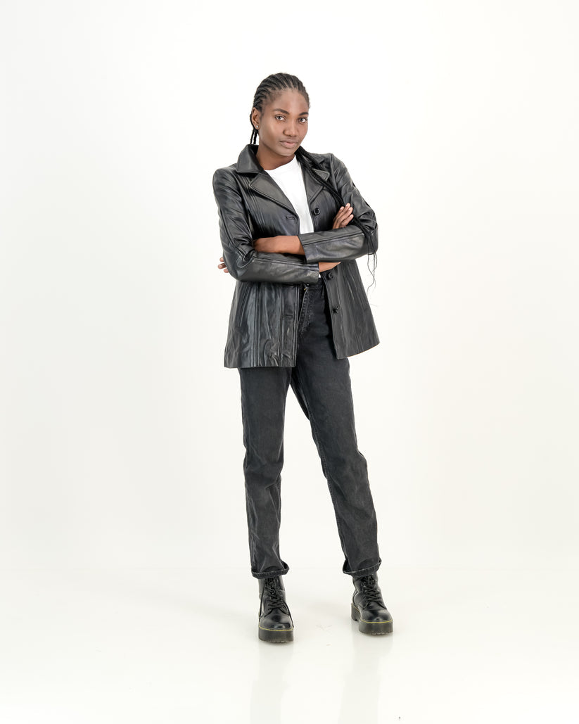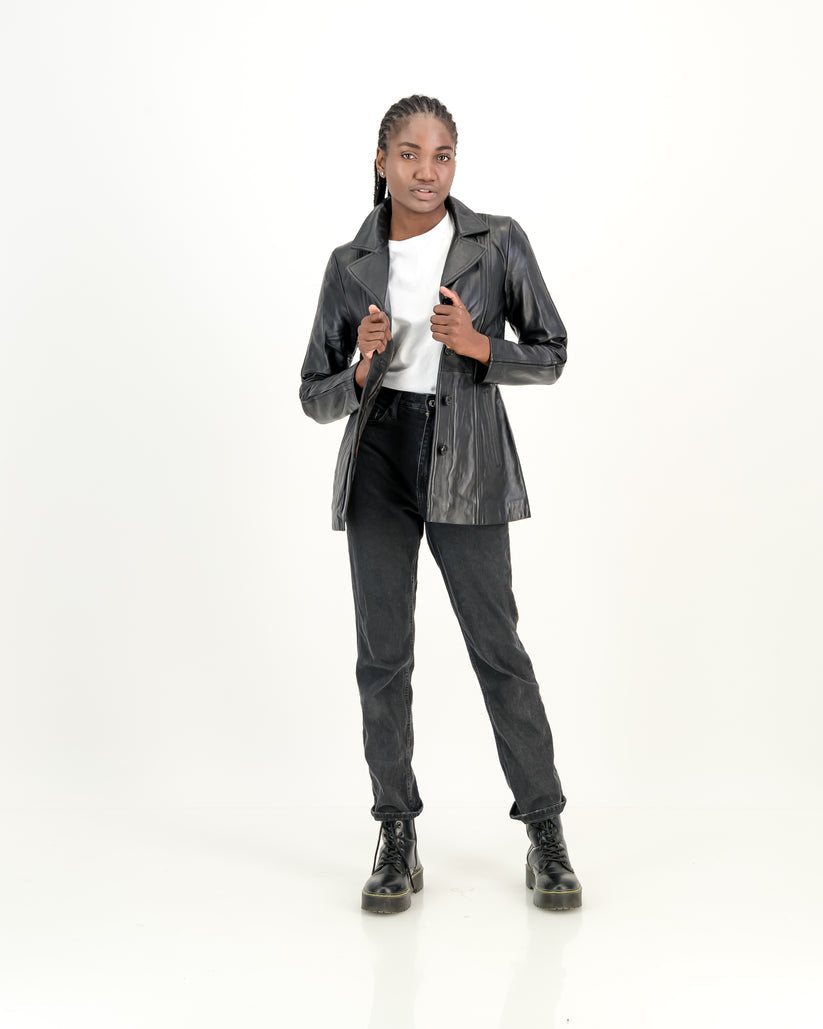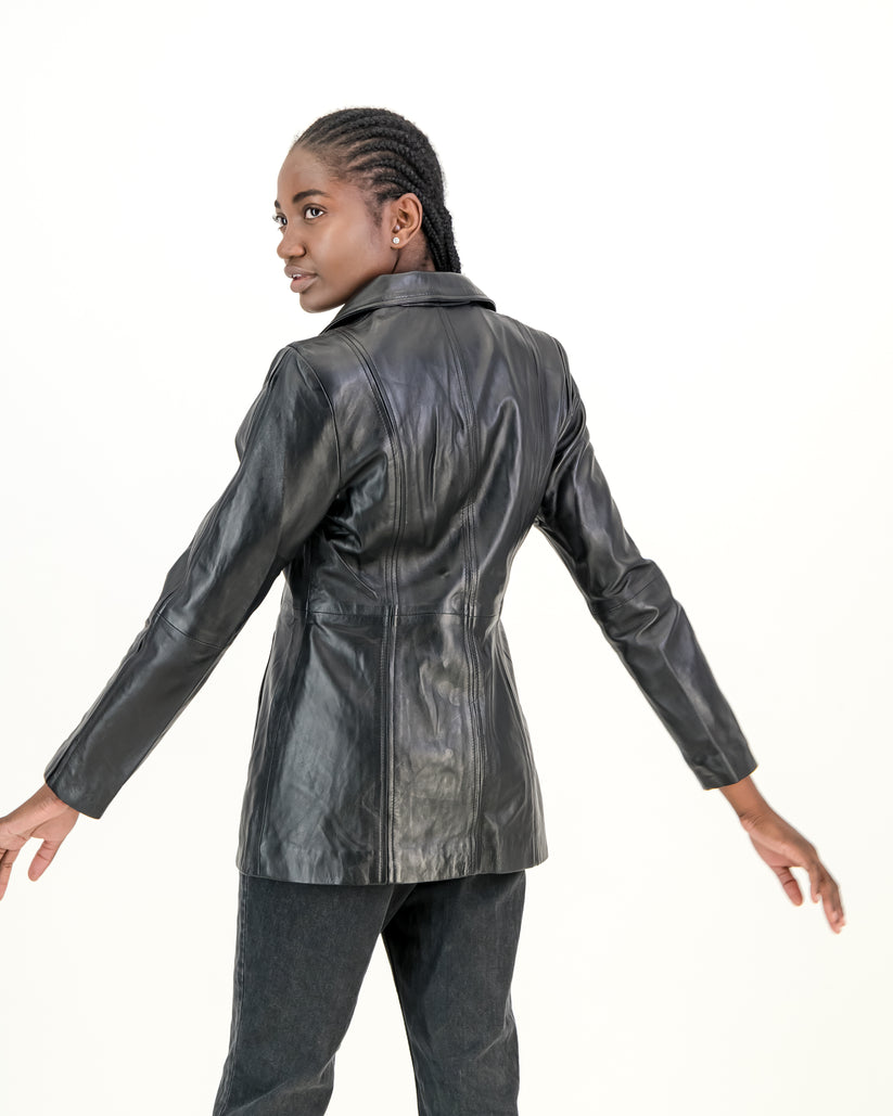 Women's Selena Long Coat Black Leather Jacket