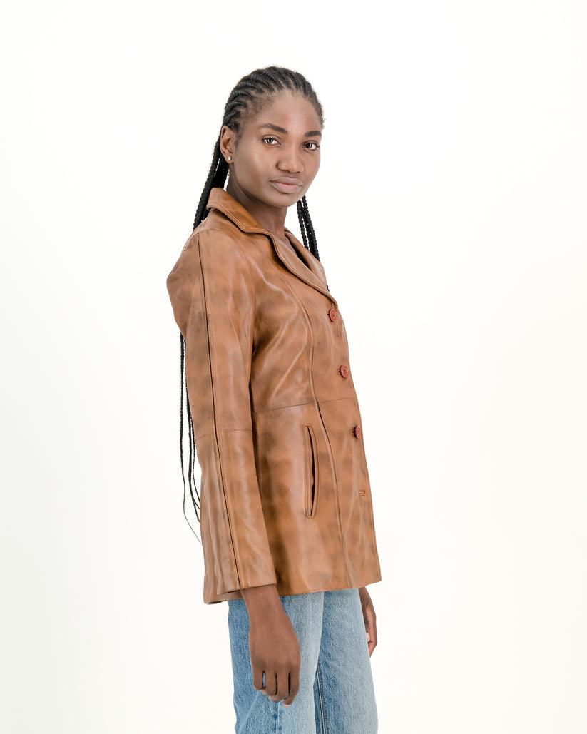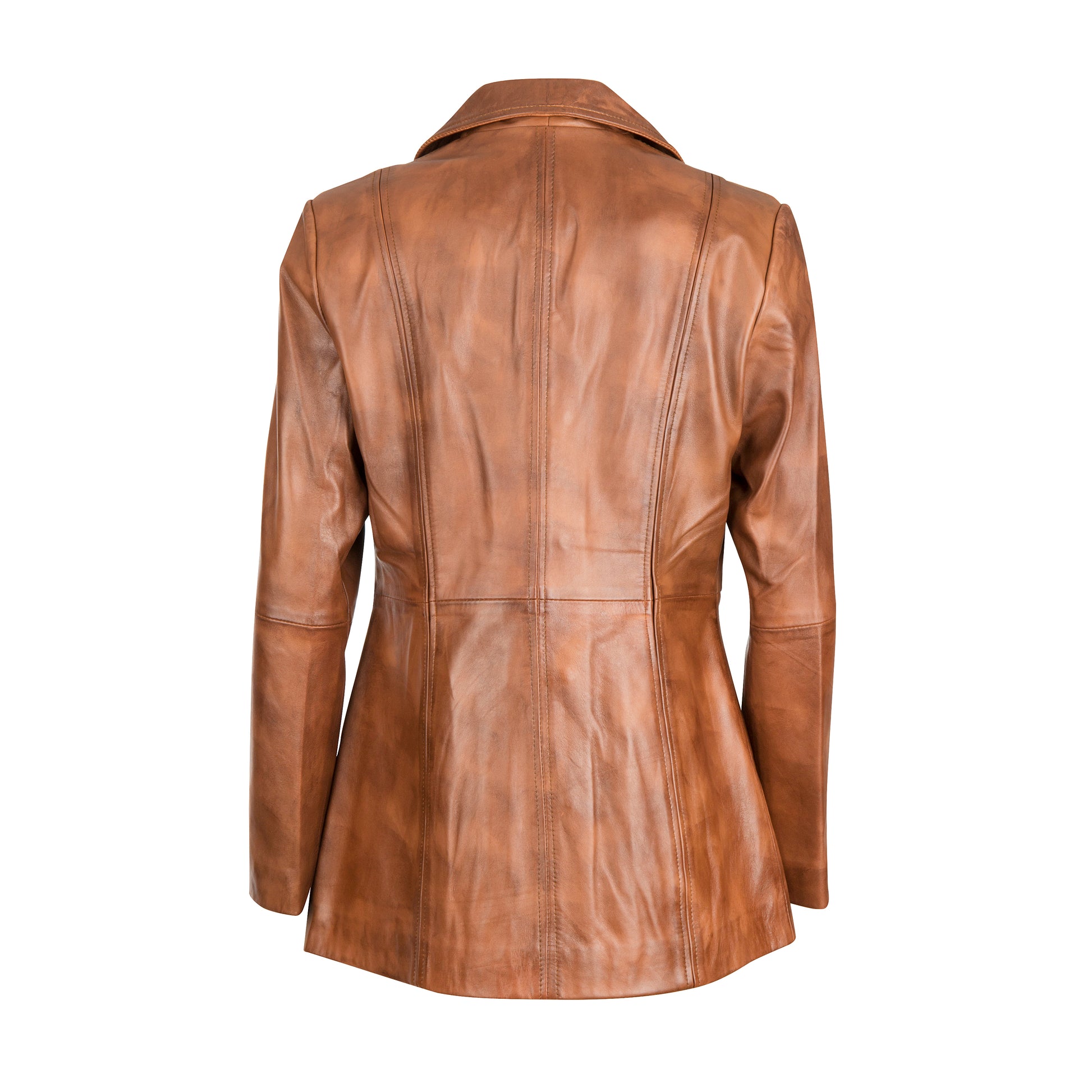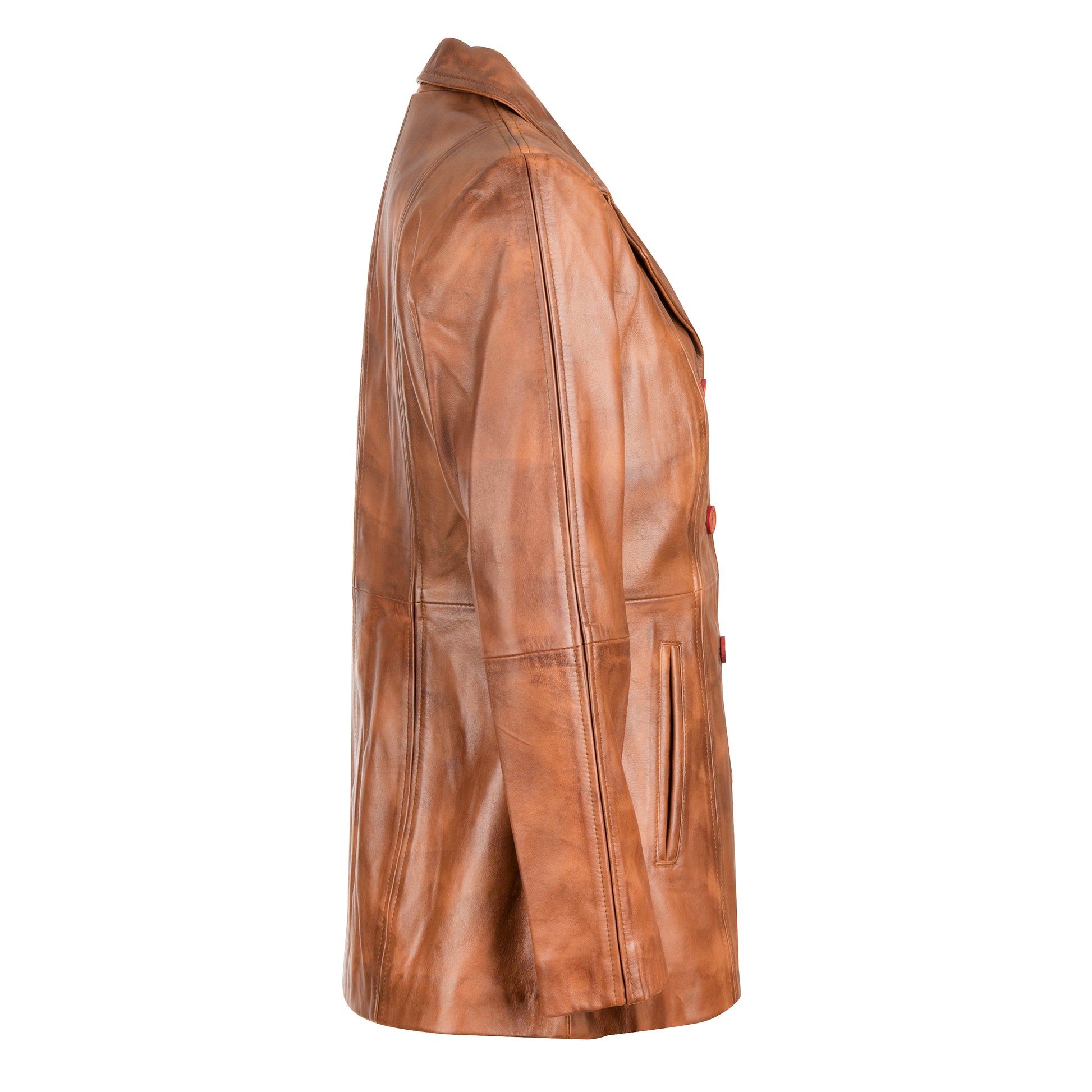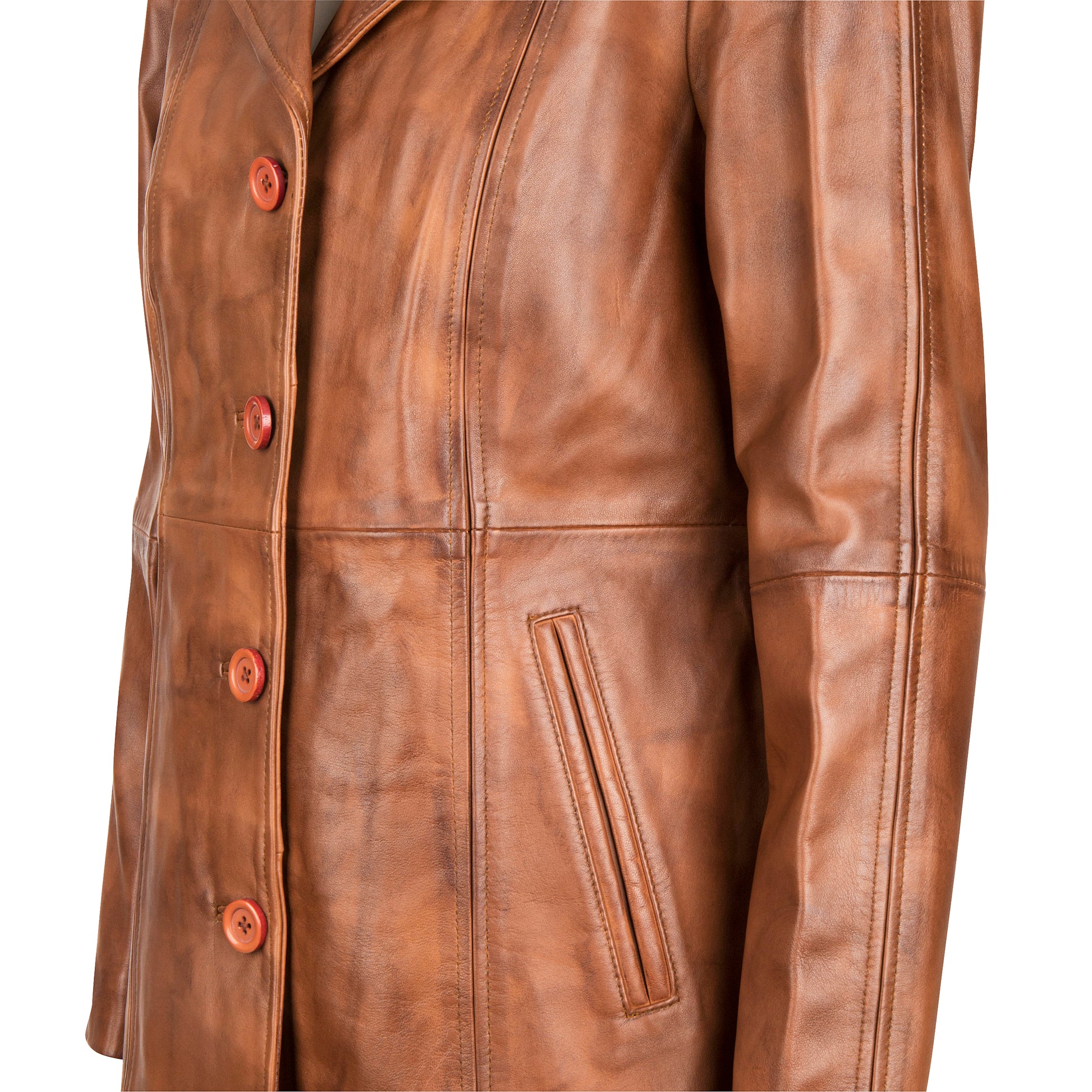 Women's Selena Long Coat Waxed-Brown Leather Jacket