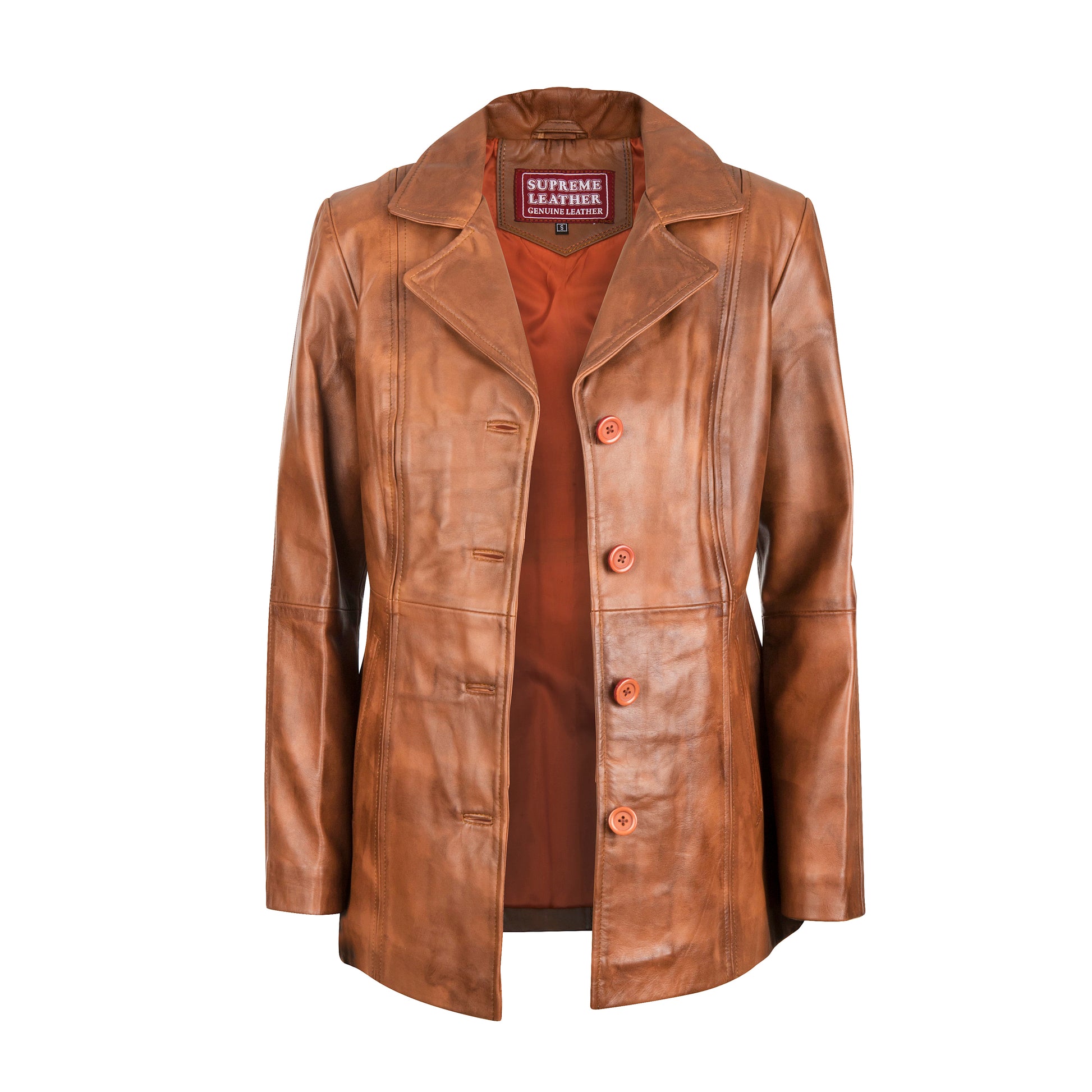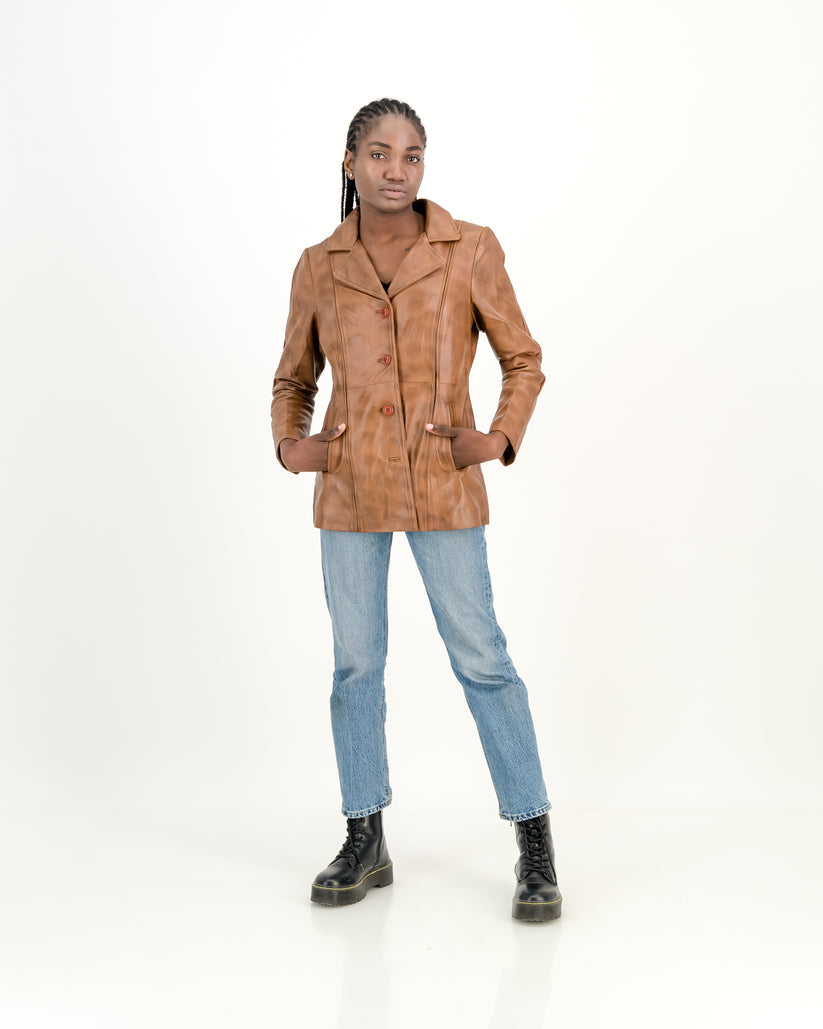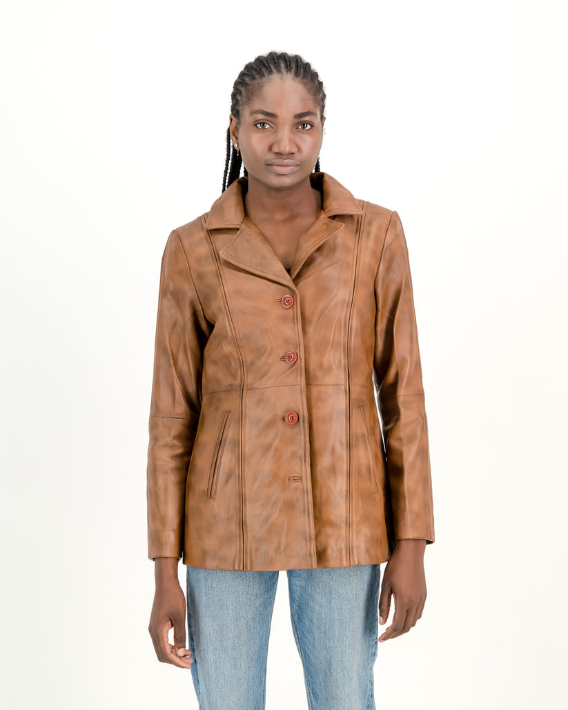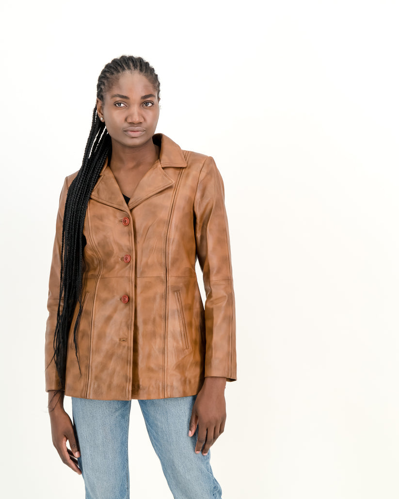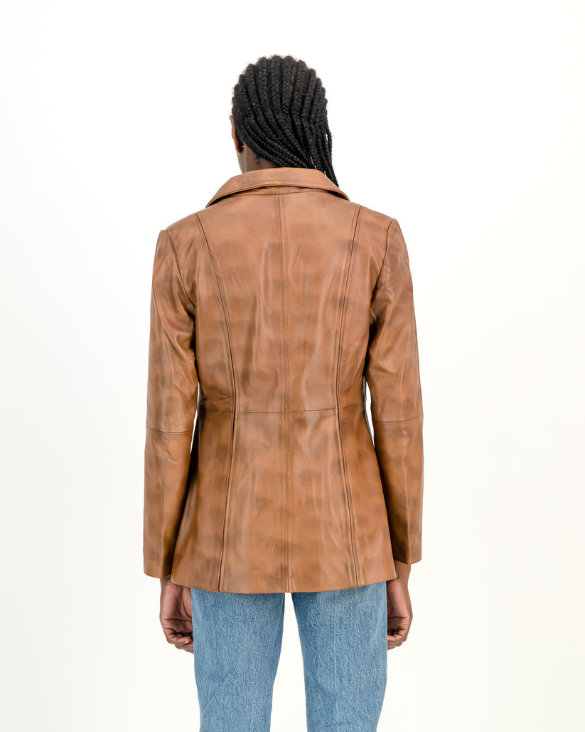 Women's Selena Long Coat Waxed-Brown Leather Jacket